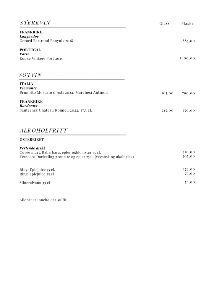 Lurer du på noe om vinene, ikke nøl med å ta kontakt med oss. Vi anbefaler gjerne den perfekte flasken til din meny. Skål for nye opplevelser og gode minner som venter .